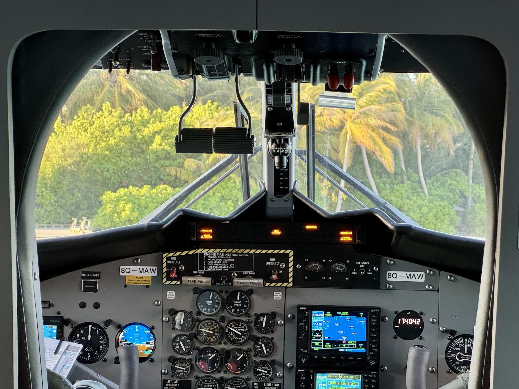 Die Flugroute führt über mehrere Atolle hinweg – darunter das Nord-Malé-Atoll, das Lhaviyani-Atoll und schließlich das abgelegene Shaviyani-Atoll. Aus luftiger Höhe eröffnen sich märchenhafte Ausblicke auf ringförmige Riffe, schimmernde Sandbänke und türkisfarbene Lagunen. Wir sitzen weiter vorne und blicken direkt ins Cockpit des Wasserflugzeugs "de Havilland DHC-6 Twin Otter", wo die beiden barfüßigen Piloten in Shorts und mit sonnengebräunter Lässigkeit den Inbegriff der Malediven-Vibes verkörpern.